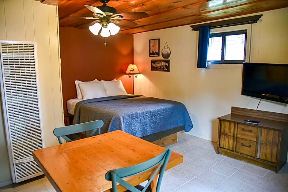 This suite features a hot tub and a fireplace. This suite is consisted of of 1 bedroom, a seating area and 1 bathroom with a bath and a shower. Featuring a balcony with mountain views, this suite also offers a washing machine and a flat-screen TV with satellite channels. The unit offers 1 bed.